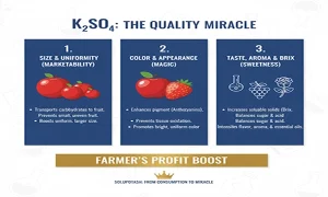وقتی صحبت از همه چیز در مورد سولفات پتاسیم از مصرف تا معجزه میشود، جذابترین بخش برای کشاورزان، تاثیر آن بر کیفیت نهایی و قیمت فروش محصول است. پتاسیم موجود در این کود، موتور محرکه انتقال مواد غذایی در گیاه است.